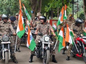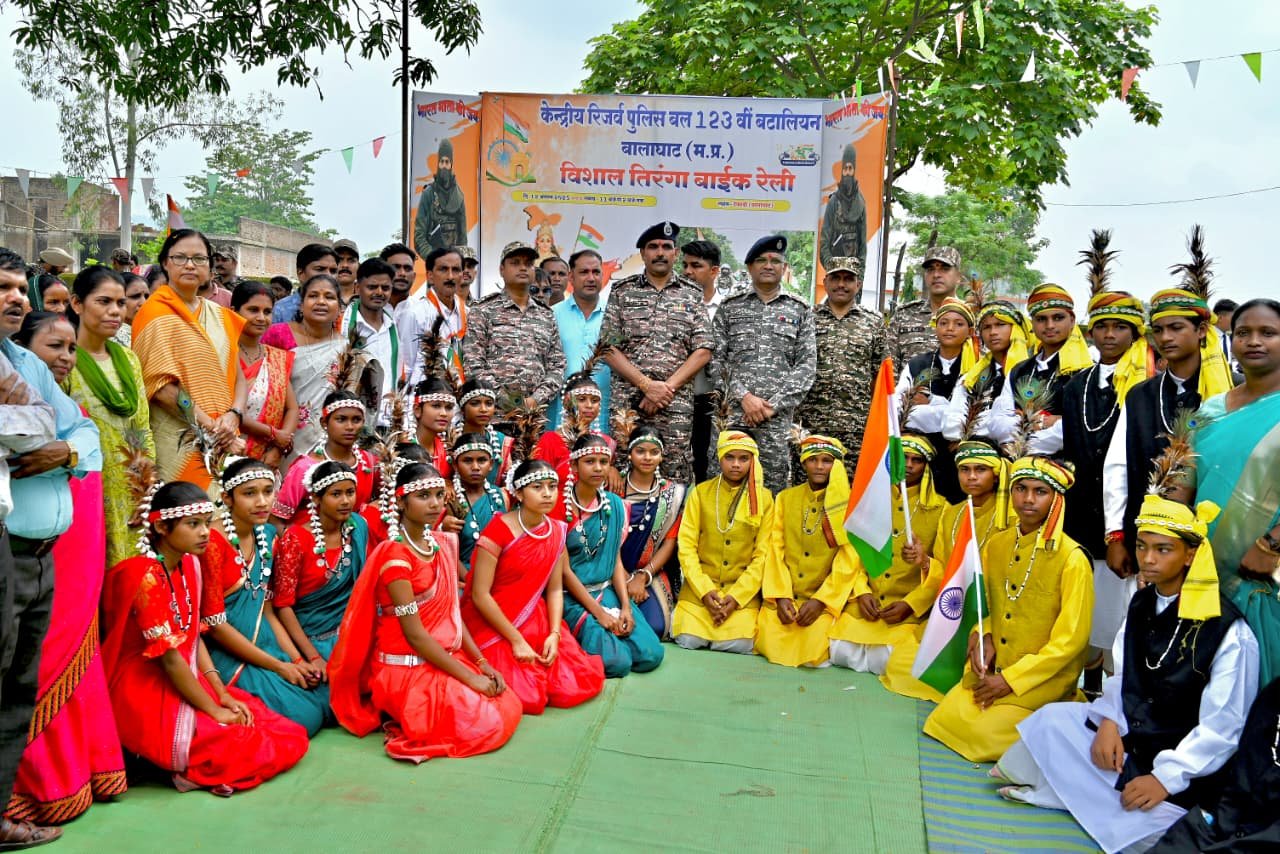 बालाघाट, अभिषेक सिन्हा : जन सुरक्षा के लिए जिले में तैनात केन्द्रीय रिजर्व पुलिस बल सीआरपीएफ-123 वीं बटालियन द्वारा कल हर घर तिरंगा अभियान के अंतगर्त तिरंगा रैली निकाली गई। यह विशेष तिरंगा रैली बटालियन कैम्प भरवेली से ग्राम टेकाड़ी (भरवेली मार्केट होते हुए) विस्तारित रही। यह रैली स्वतंत्रता दिवस के पावन अवसर को मनाने और देशभक्ति के जज्बे को प्रोत्साहित करने के उद्देश्य से हर घर तिरंगा अभियान के अंतर्गत आयोजित की गई थी। रैली की शुरुआत बटालियन कैम्प में ध्वजारोहण और देशभक्ति गान से हुई। इस मौके पर कमाण्डेंट हजारी लाल की अध्यक्षता में,द्वितीय कमान अधिकारी अनूप कुमार, देवेन्द्र प्रसाद दुबे, उप कमाण्डेन्ट मनोज कुमार व डा संतोष कुमार ने रैली को हरी झंडी दिखाकर रवाना किया।